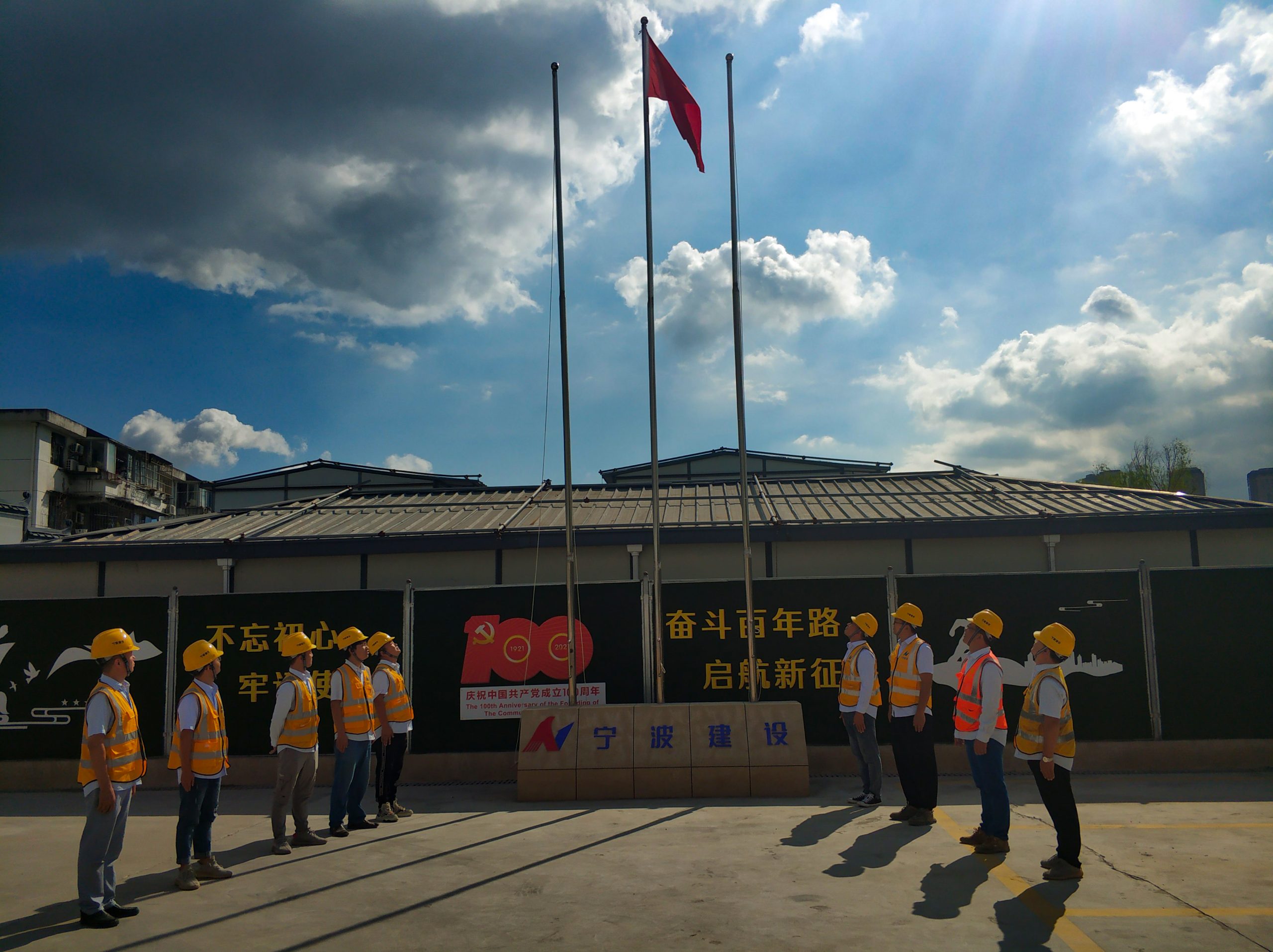 ? ? ? 10月1日清晨,隨著太陽的冉冉升起,東錢湖快速路項目部、鄞奉公園項目部的大門前舉行了莊嚴肅穆的升旗儀式。隨著《義勇軍進行曲》的響起,鮮艷的五星紅旗緩緩上升,全體員工身著工作服和馬甲,面向國旗行注目禮,齊唱國歌,共同祝愿祖國繁榮昌盛。