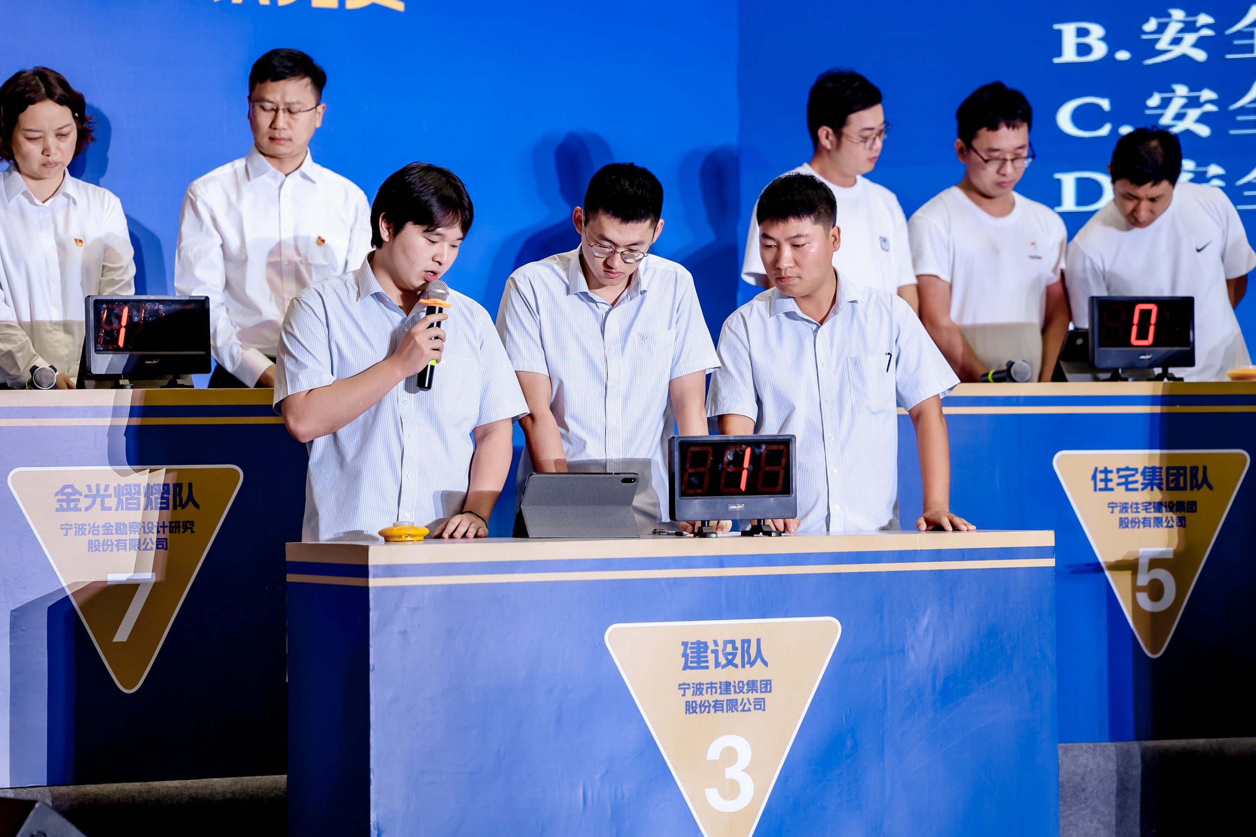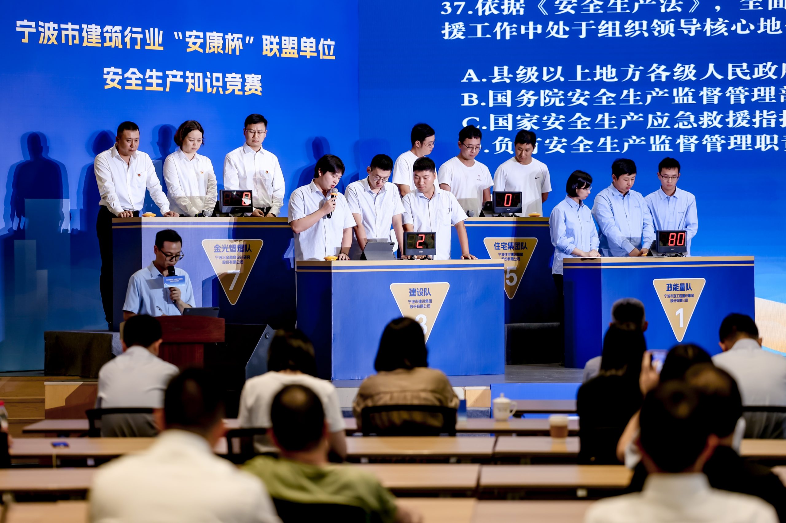 ? ? ? ?參與此次競賽的8支代表隊(duì)由市建筑行業(yè)“安康杯”聯(lián)盟單位組成,比賽圍繞安全相關(guān)法規(guī)標(biāo)準(zhǔn)、安全生產(chǎn)應(yīng)知應(yīng)會(huì)、應(yīng)急處置、黨史知識(shí)等多個(gè)方面,設(shè)置有必答題、搶答題、挑戰(zhàn)題三類題型,題目靈活,重點(diǎn)突出,全方位考察選手們的安全生產(chǎn)理論水平。