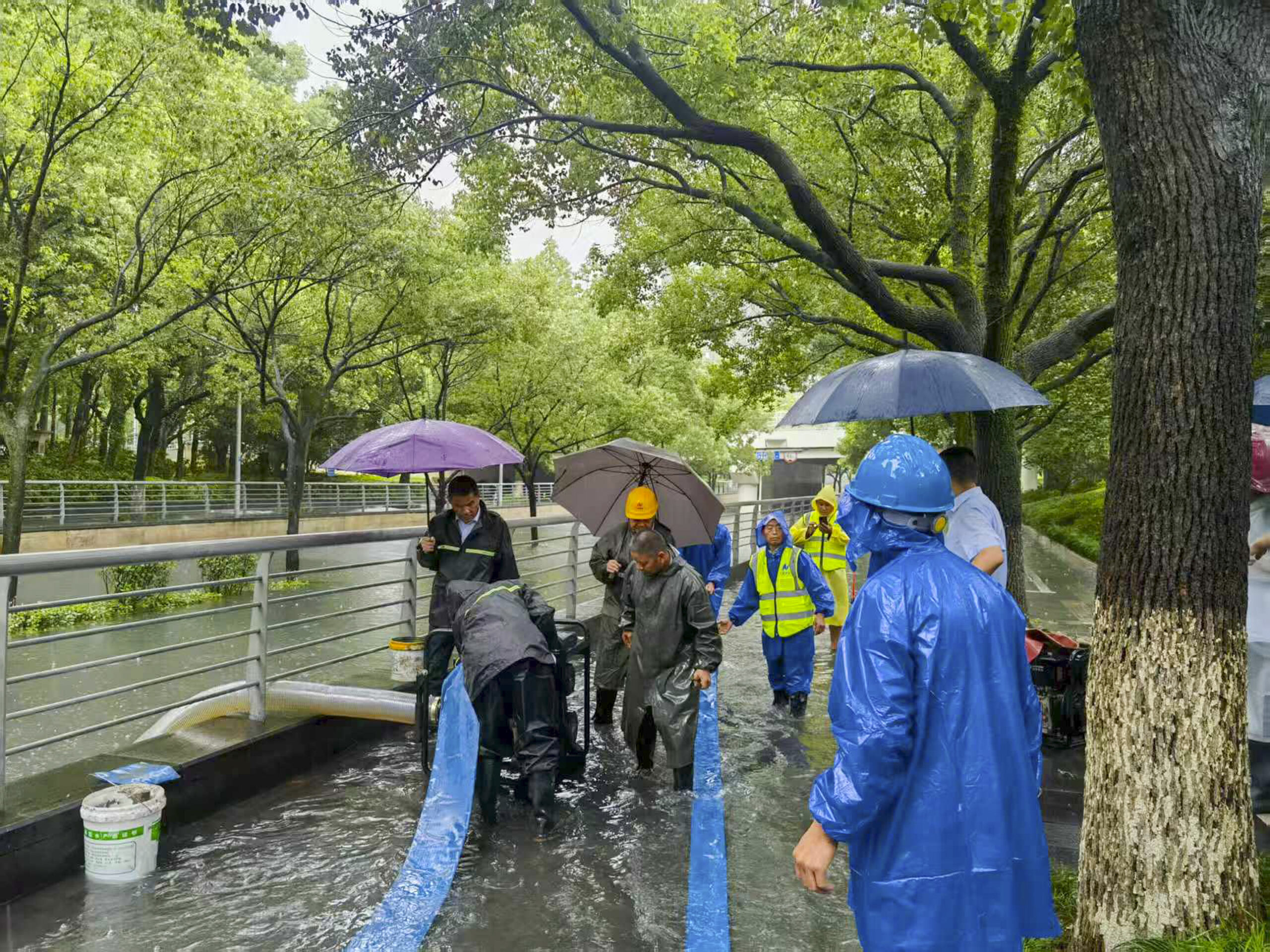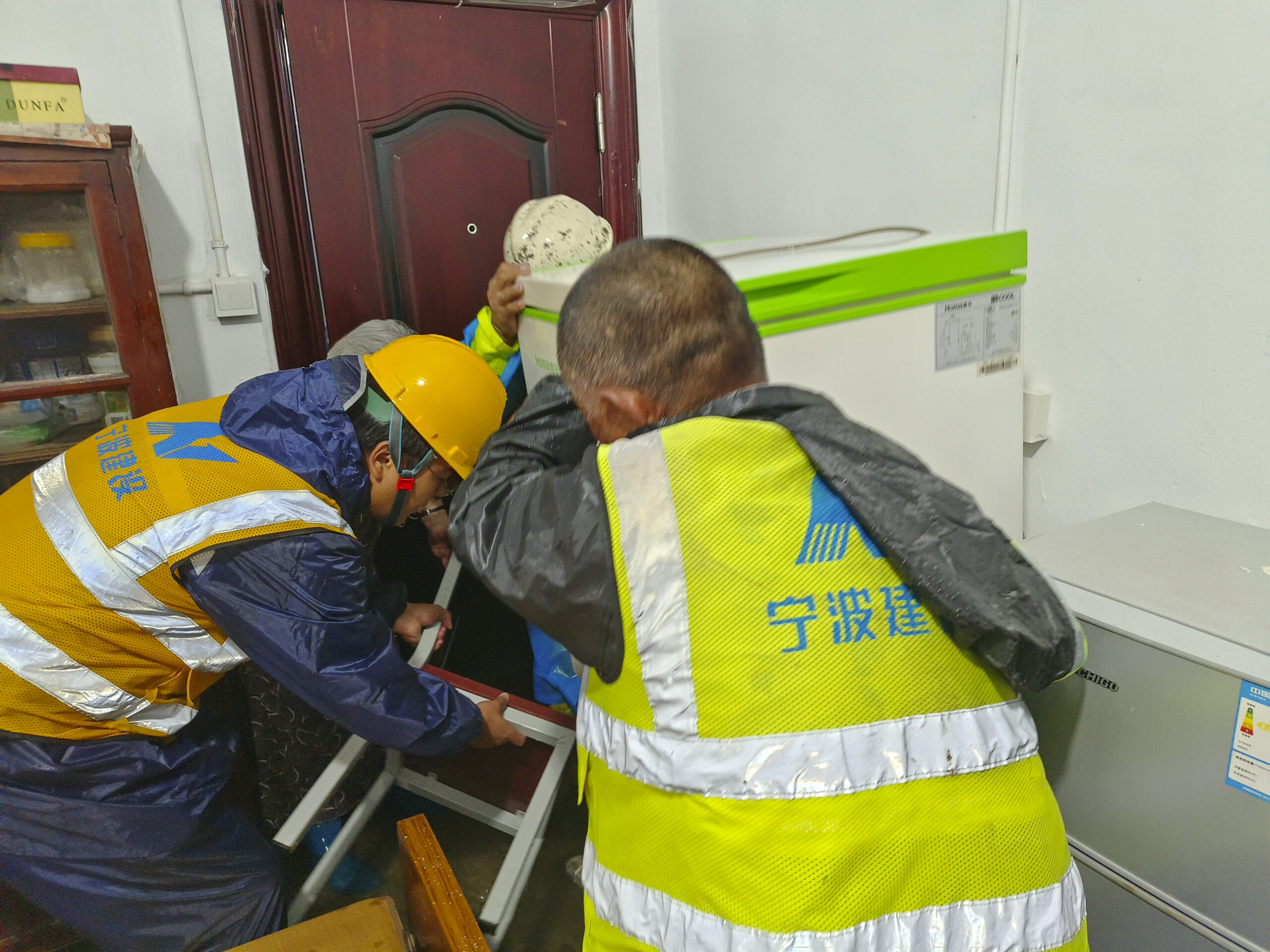 ? ? ? ?中山西路街區(qū)更新工程項目搶險小分隊接到社區(qū)求助,部分低保戶由于水勢上漲太快來不及撤離被困家中,項目部立即組織10余名隊員、4臺水泵趕赴汪弄社區(qū),此時汪弄社區(qū)內(nèi)部街道水深已經(jīng)到了大腿處,搶險小隊組織搶險排水作業(yè),并幫助兩名低保戶把涉水家電搬運至高處,將他們帶離至安全位置。截止下午4點,經(jīng)過一天的強排,小區(qū)積水已基本退去。