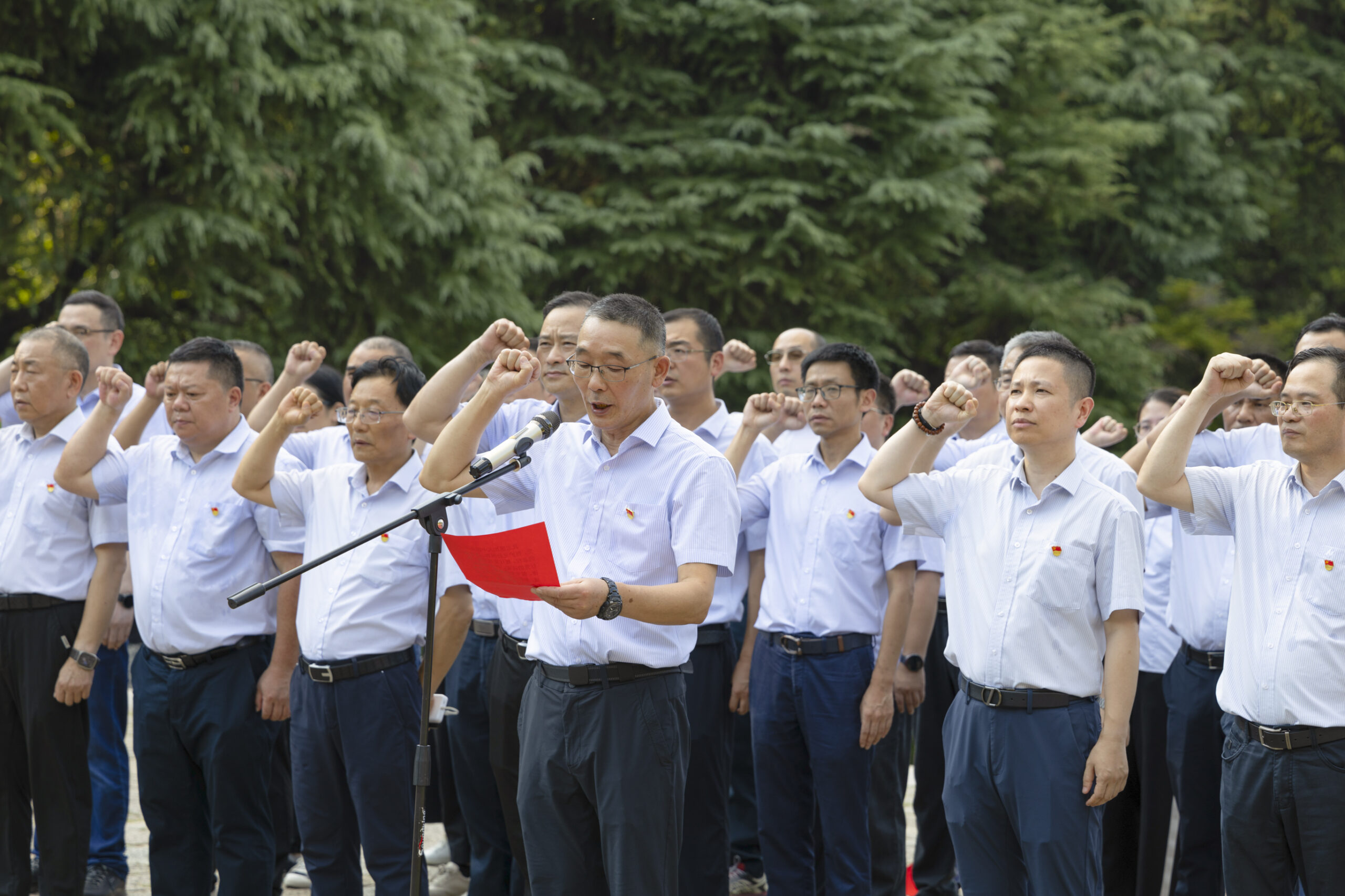 ? ? ? ?隨后,黨員隊(duì)伍前往雨花臺(tái)烈士陵園。在莊嚴(yán)肅穆的烈士紀(jì)念碑前,全體黨員列隊(duì)肅立,向革命先烈敬獻(xiàn)花圈。集團(tuán)黨委委員洪波、謝偉光獻(xiàn)上花籃,集團(tuán)黨委書(shū)記裘永祥、副書(shū)記卞高勇共同上前整理挽聯(lián),全體黨員默哀三分鐘,以莊重的儀式表達(dá)對(duì)英烈的深切緬懷與崇高敬意。面對(duì)鮮紅的黨旗,黨員們?cè)隰糜老闀?shū)記的帶領(lǐng)下重溫入黨誓詞,錚錚誓言回蕩在陵園上空,彰顯著傳承英烈精神、踐行初心使命的堅(jiān)定決心。